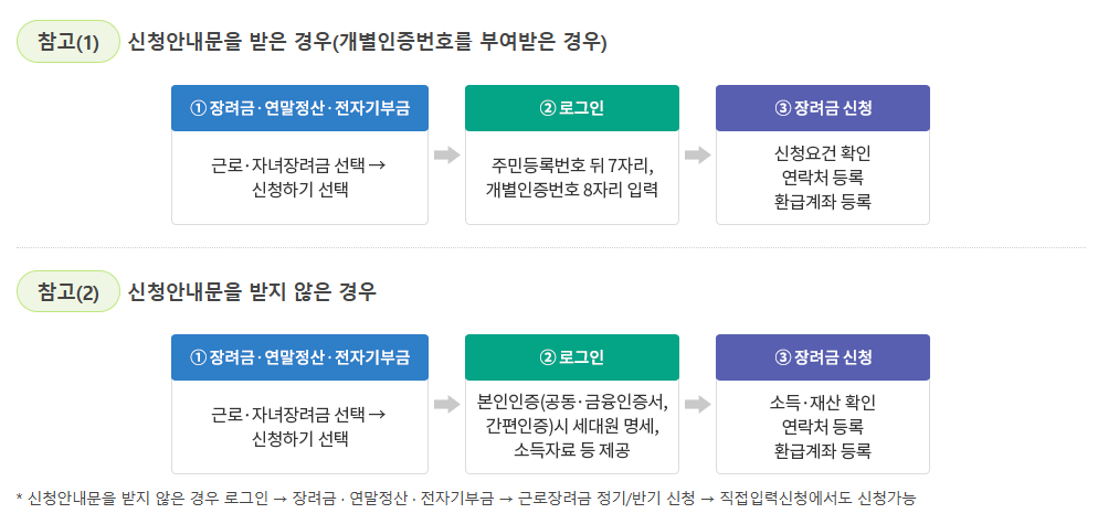 ✅ 홈택스(www.hometax.go.kr) → 로그인 후 "자녀장려금 신청" 진행