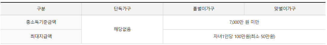 - 자녀 1명당 최대 100만 원 지급