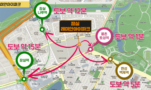 - 생활편의: 롯데월드몰, 롯데타워, 석촌호수, 올림픽공원, 송파구청