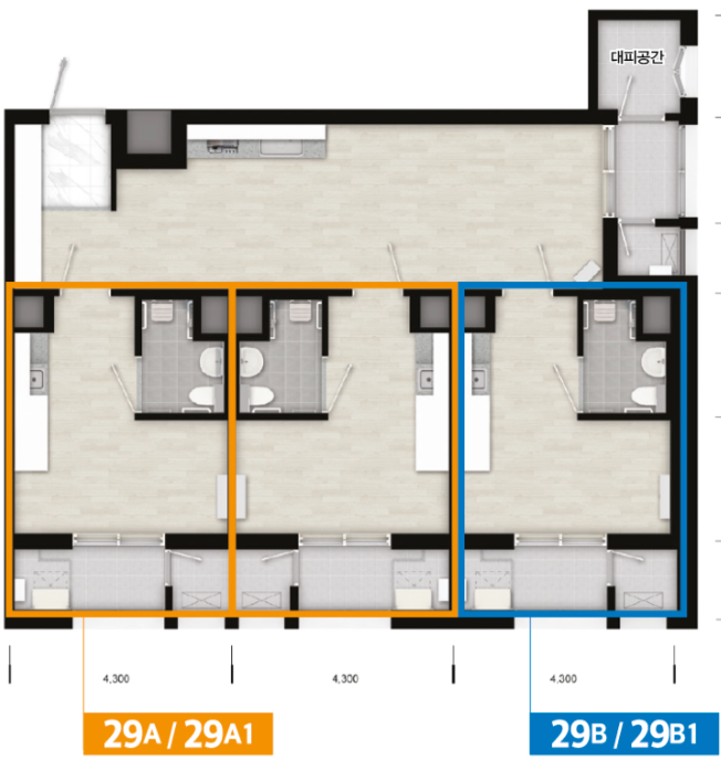 - 셰어형 구조: 각 호에는 3개의 침실이 있으며, 침실·욕실·주방은 개별 사용, 거실·현관·발코니는 공용 공간입니다.