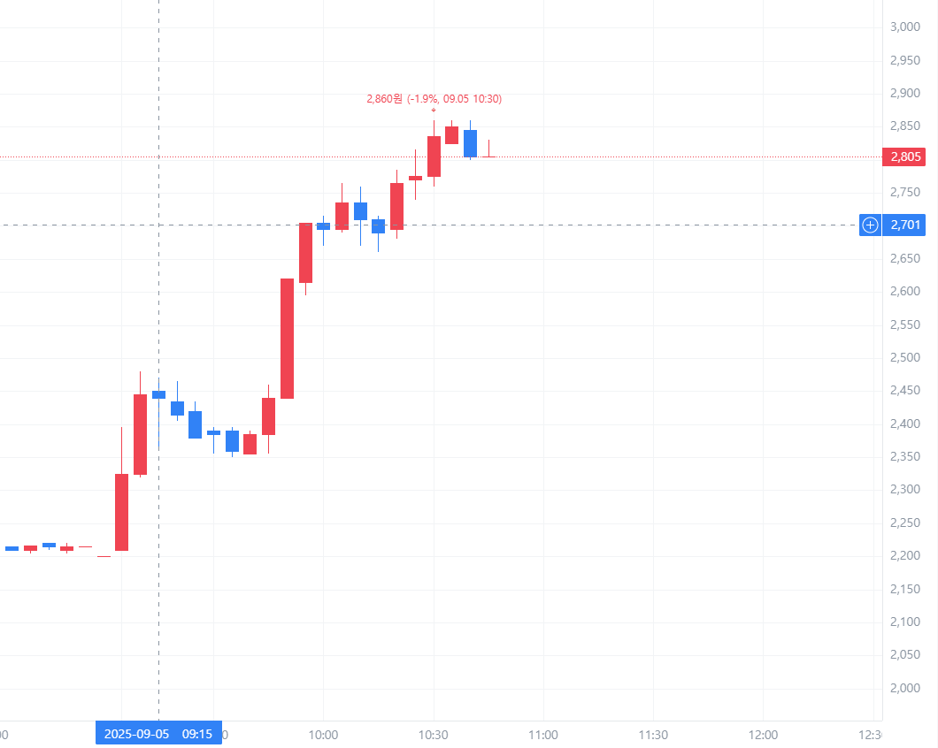- 고가 : 2,860원 (상한가 근접)